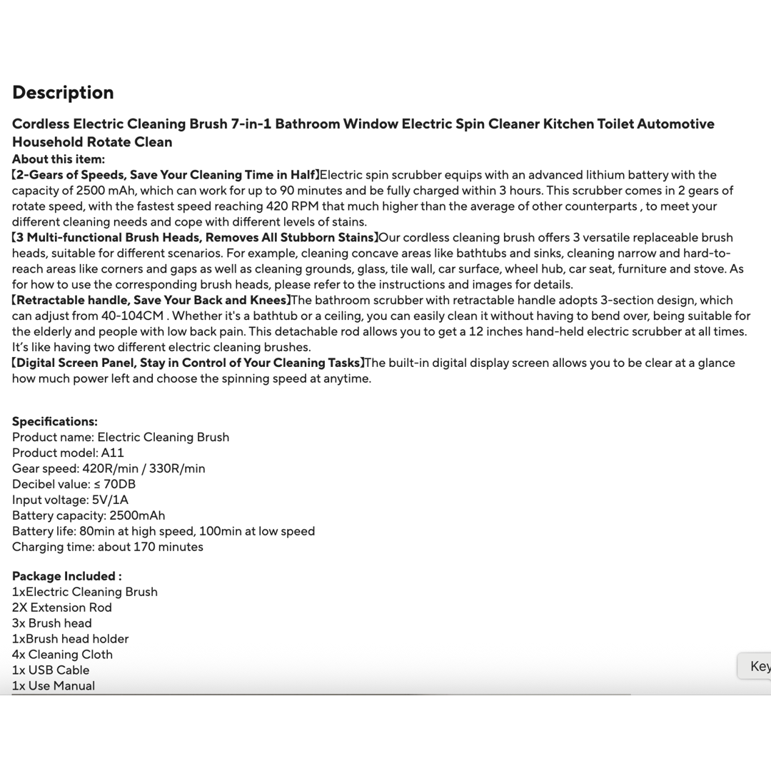 Cleanora SpinBrush™ – Electric Spin Scrubber with Extendable Handle (7-in-1)